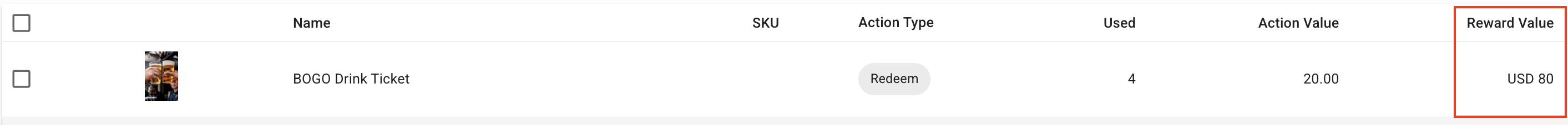 - Once you give out this Reward to customers you'll see the Reward Value start to adjust