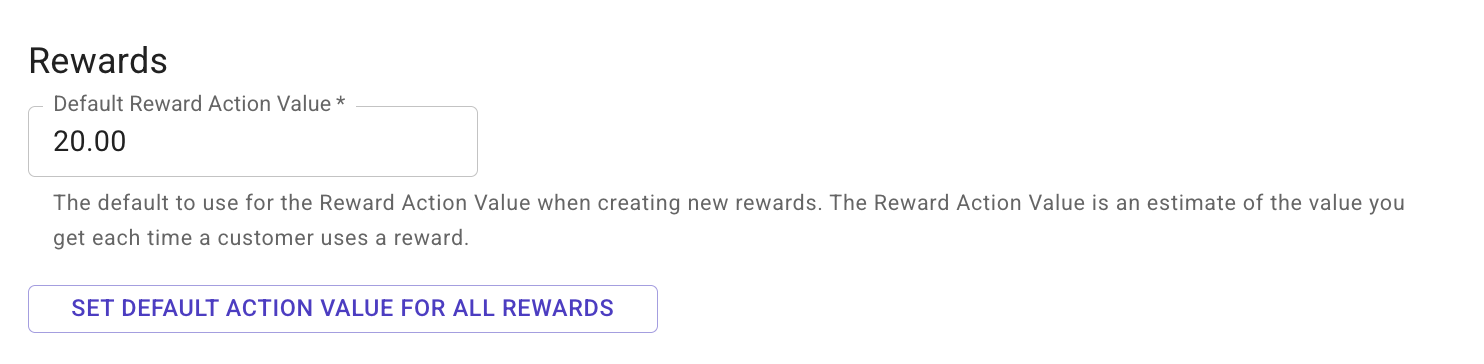 Once configured, click Set Default Action Value for All Rewards to apply it across your program.
