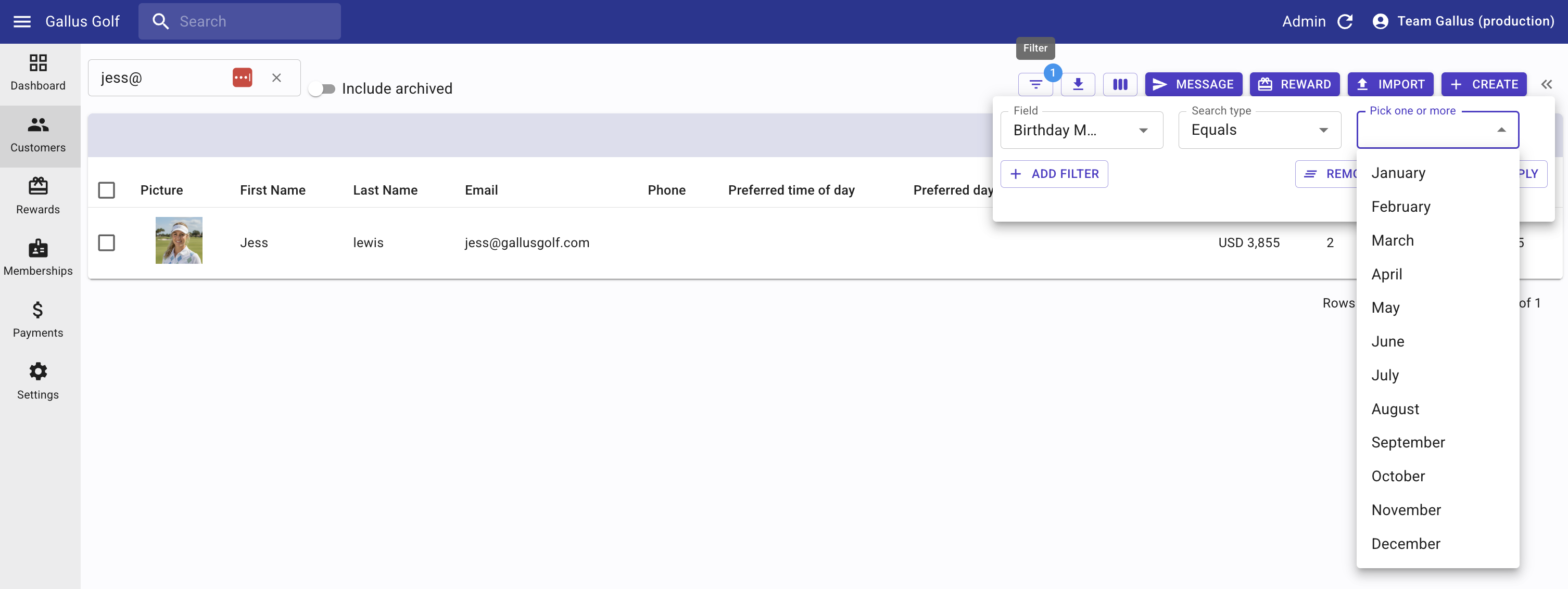 - Filter by Birthday Month and see all the customers who have selected that Month