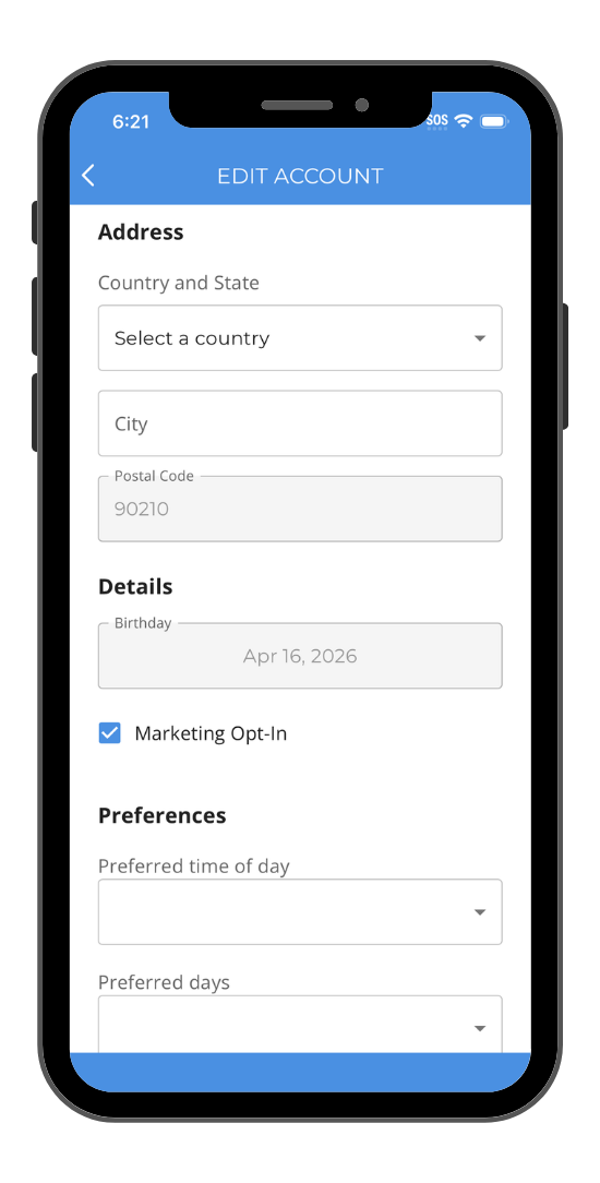 - The field can be applied to when customers create an account and/or also when they edit their account.
