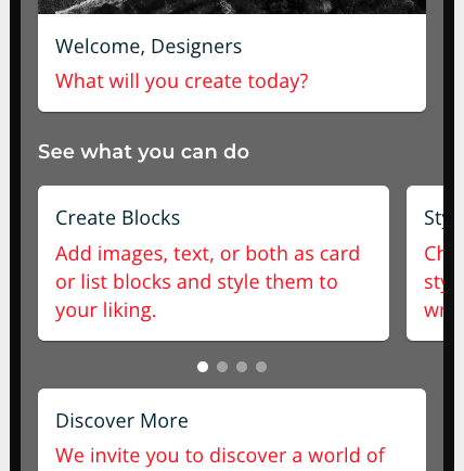 #dsgn-blocks (Modify the blocks of the app less the Logo and Header) Code Example: