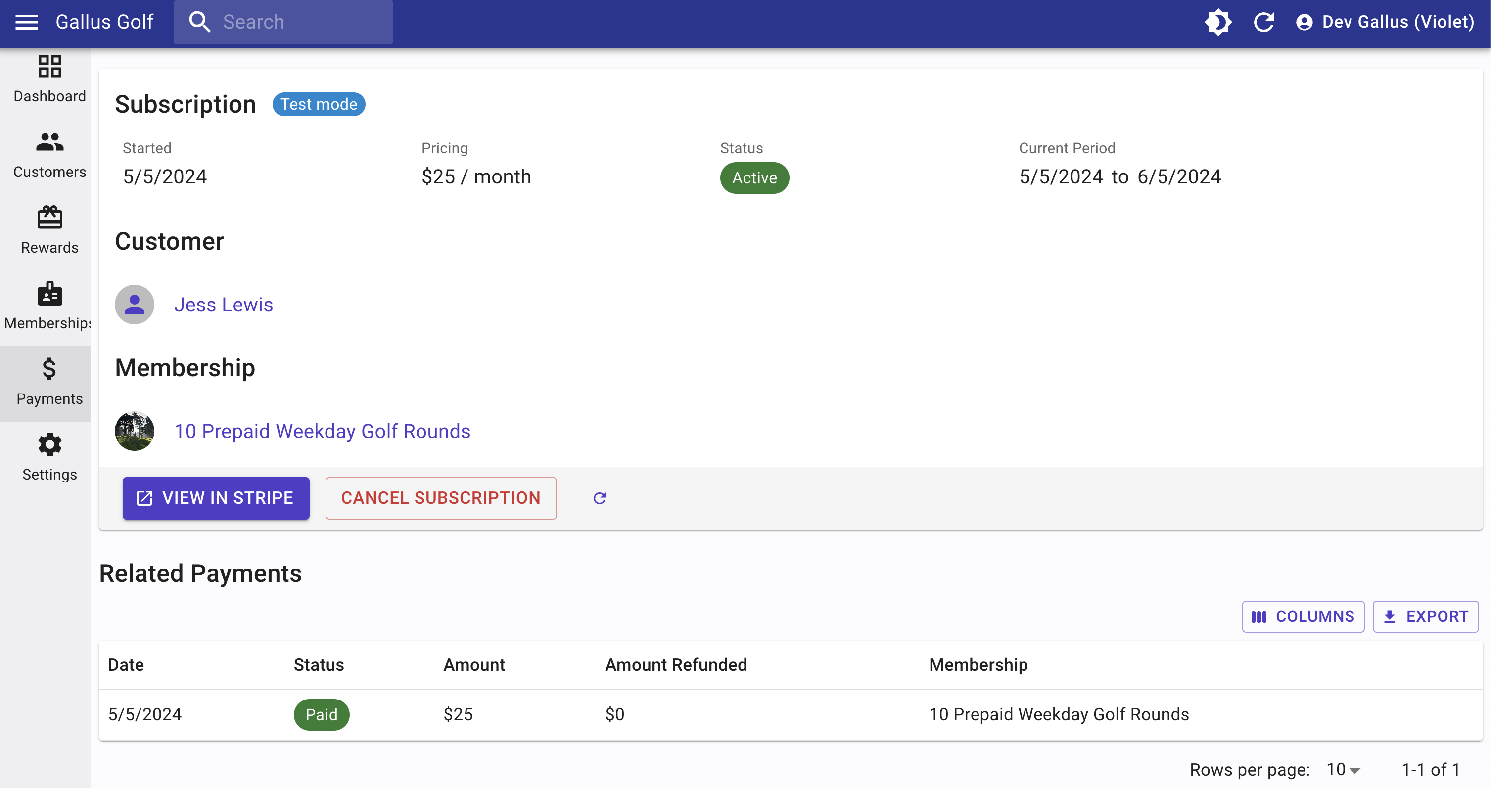 Subscription or Membership within your app. Customers can cancel their subscriptions directly through the app or you may do it for them through the CMS. For one-time membership payments, cancellations must be handled through the CMS. All transactions are processed using your Stripe account.