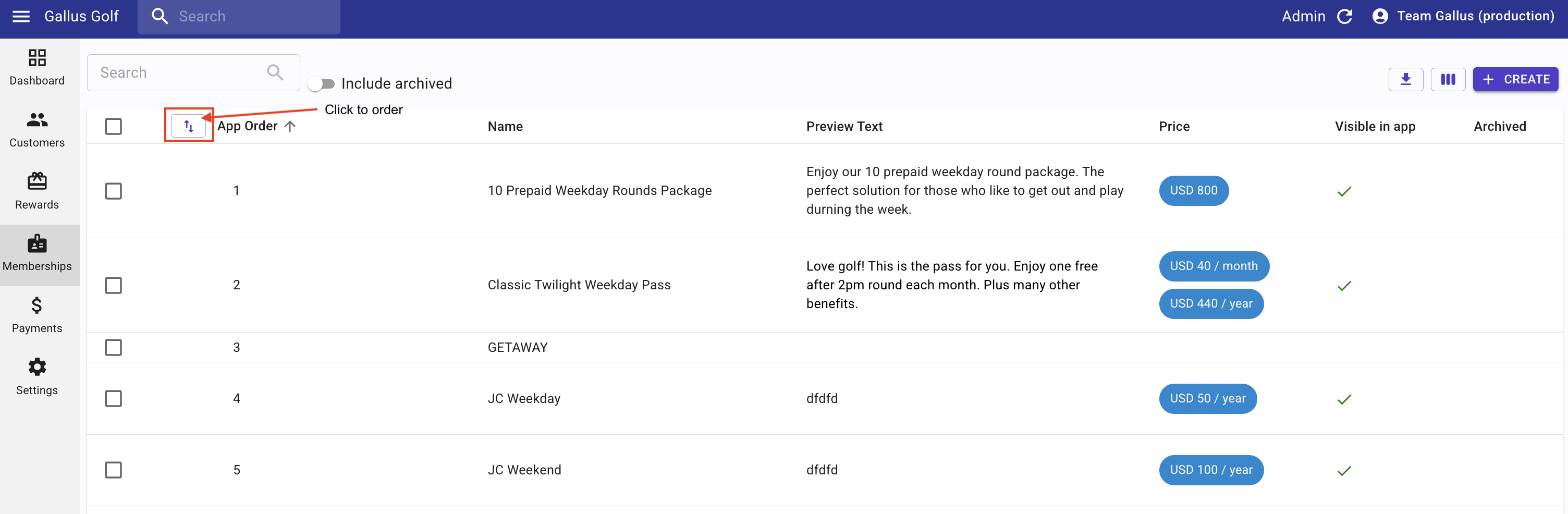 Subscriptions is a collection of "subscriptions" or "memberships" that are only available within a Gallus Golf app and available for purchase to customers who have created an app account. As an admin, you have the ability to create as many subscriptions or memberships as you'd like with whatever content you deem necessary and rewards.