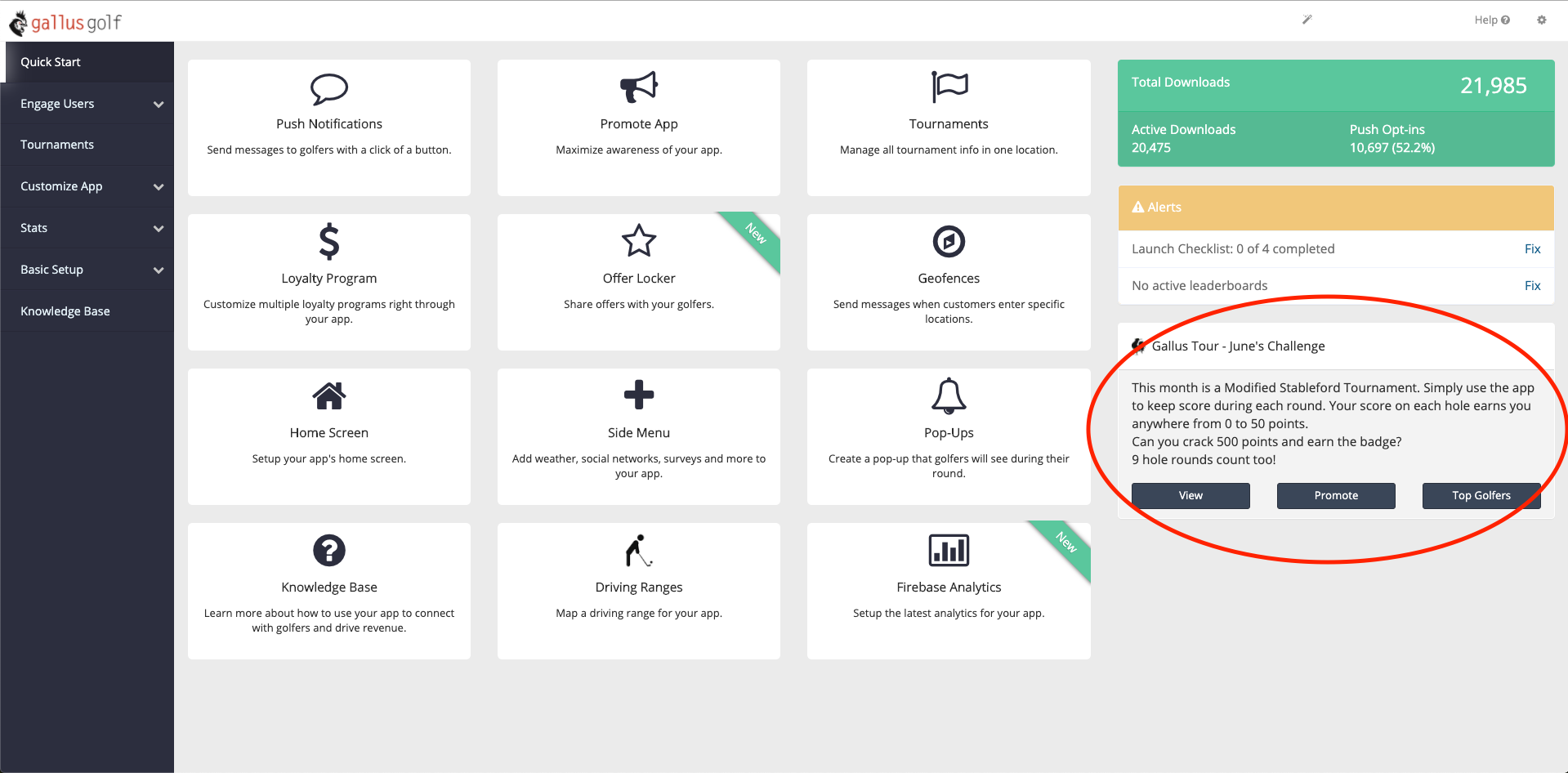 Users of your app are constantly looking for ways to interact with each other. One of the most creative ways to do so is the Gallus Monthly Tournament Series (MTS). There are two aspects of the MTS: an app-level scoring competition and a friendly competition between players and apps across the Gallus Golf ecosystem.