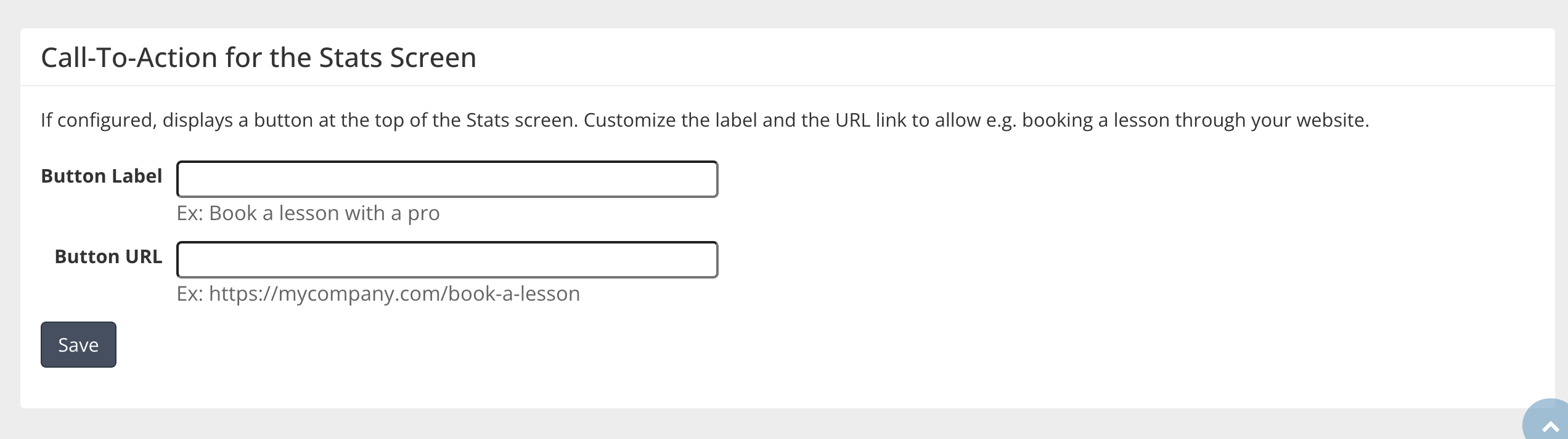 Customers can see their stats and you can set up a Call To Action button (e.g., Book A Lesson)