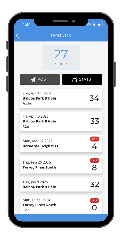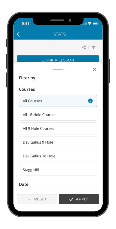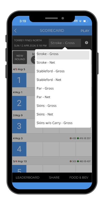 If your facility has multiple courses/rotations, users will first need to select which course they are playing before seeing the scorecard.