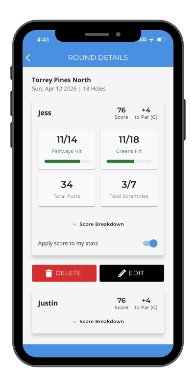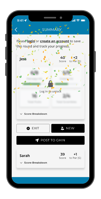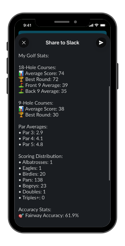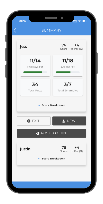 Tapping this button will allow the user to post a live link to their scorecard to a social media profile of their choice.