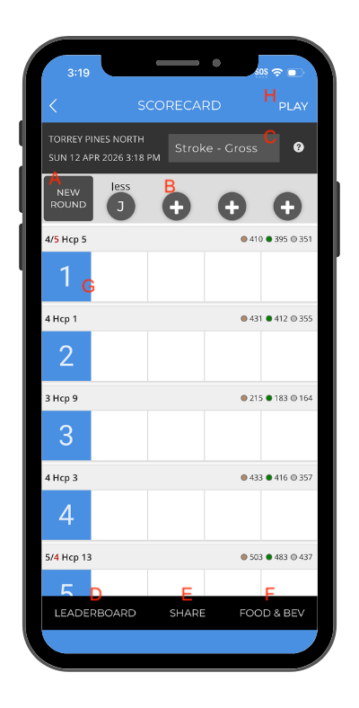 Tapping this button in a normal scorecard will bring up the monthly leaderboard of your course, along with any Custom Leaderboards you have created.