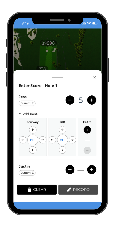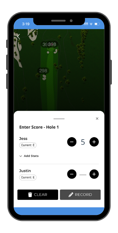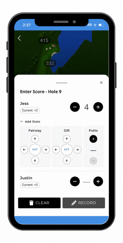 Tapping this will bring up a box to enter everyone's scores. Hitting record automatically takes the user to the next page.