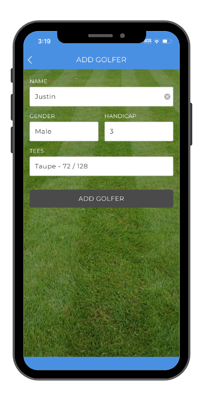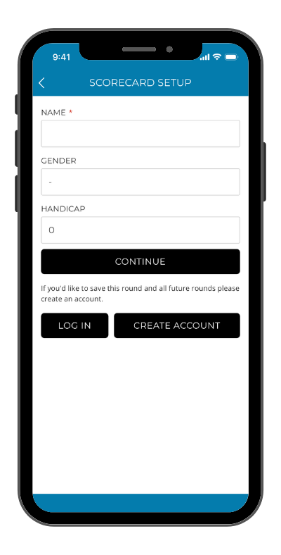 They must enter a name and gender (for handicapping purposes), and can optionally enter their handicap (for leaderboards and net scoring games) and email address (for scorecard recovery).