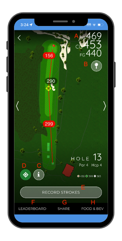 Tapping this will bring the user into the interactive GPS page of your scorecard (see next section).