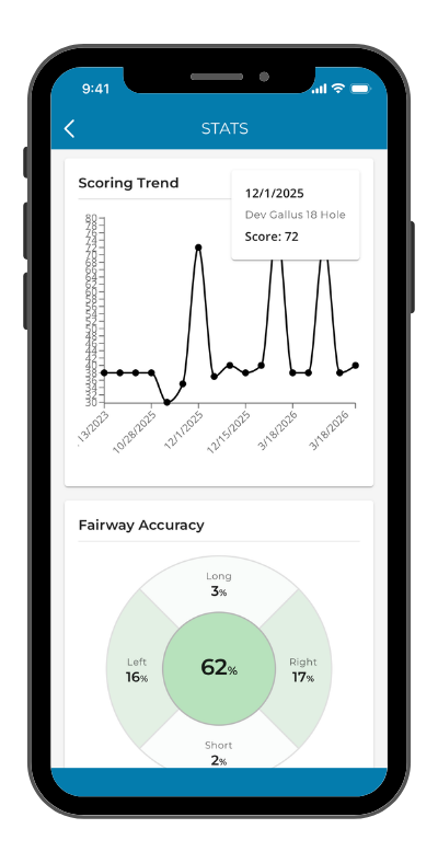 The Scorecard & GPS section of a Gallus Golf custom-branded mobile app allows users to keep score in their app, view interactive hole renderings with GPS yardage, and post their score when they're finished. If you're interested in learning more, read on.