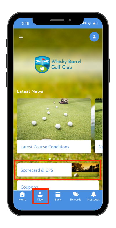 Open up the app you'd like to access the Scorecard & GPS from.