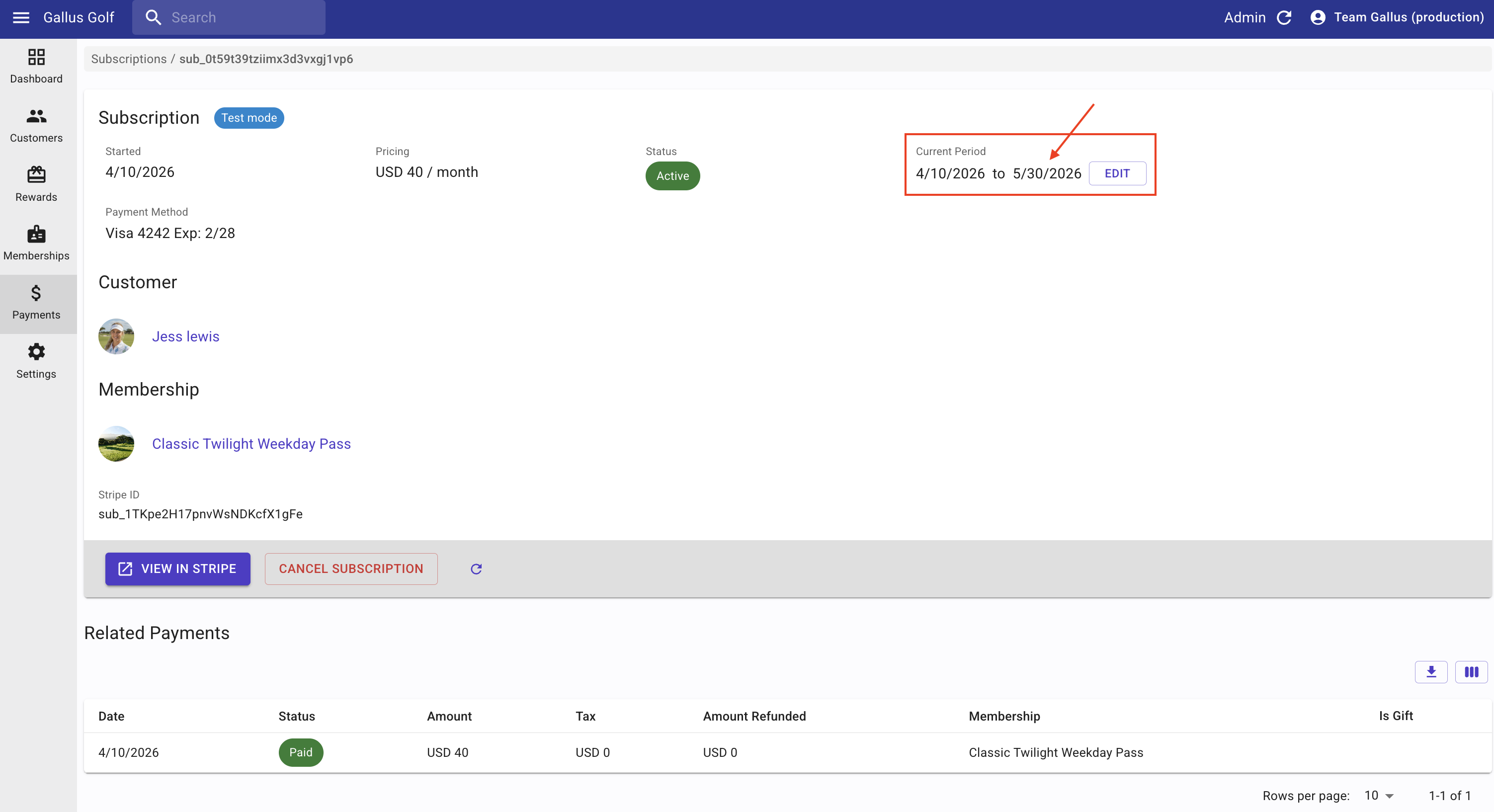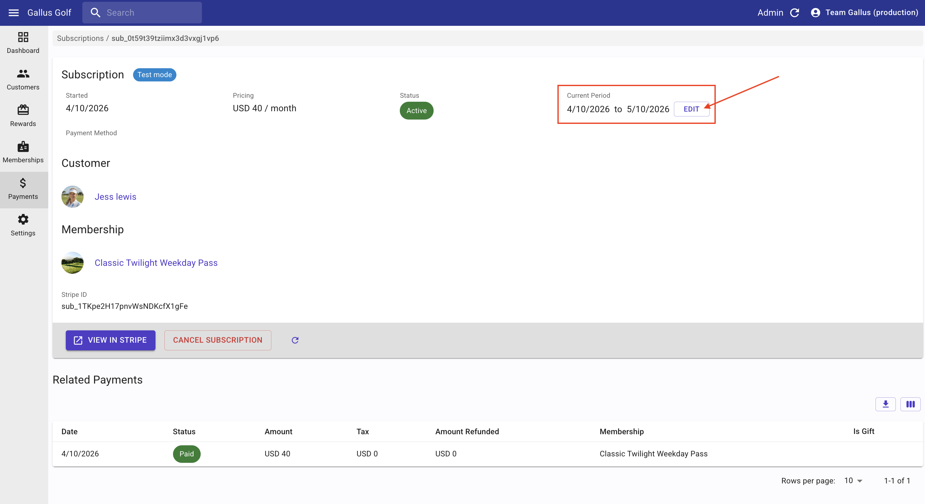 On the Customer's Membership Tab, click on the Subscription you wish to edit.
