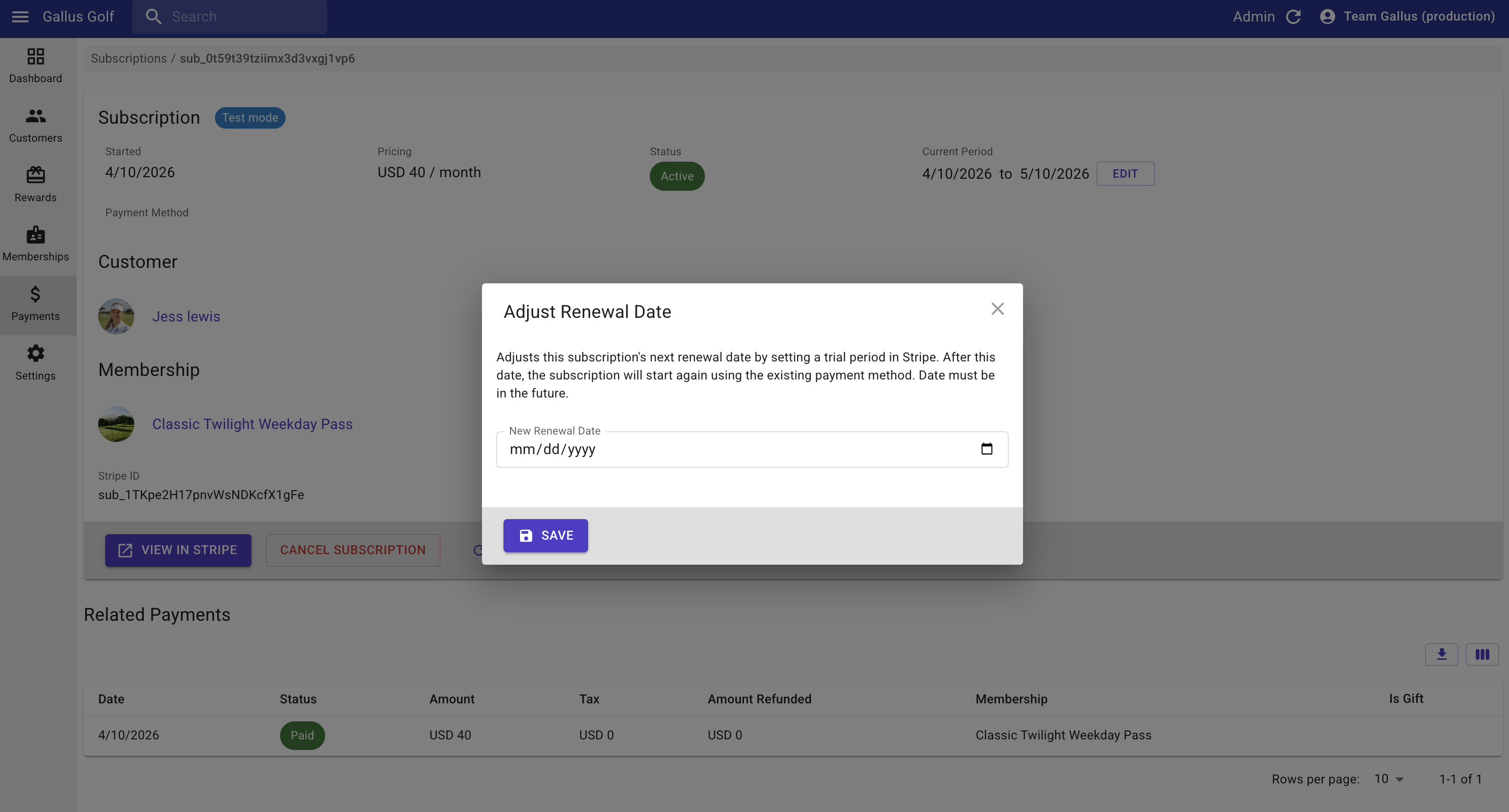 Hit Save, and your customer's renewal date will be adjusted and that will be the next time they are charged!