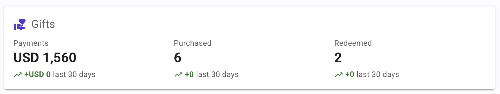 - Payments - The total value of gift cards sold (e.g., USD 1,560).