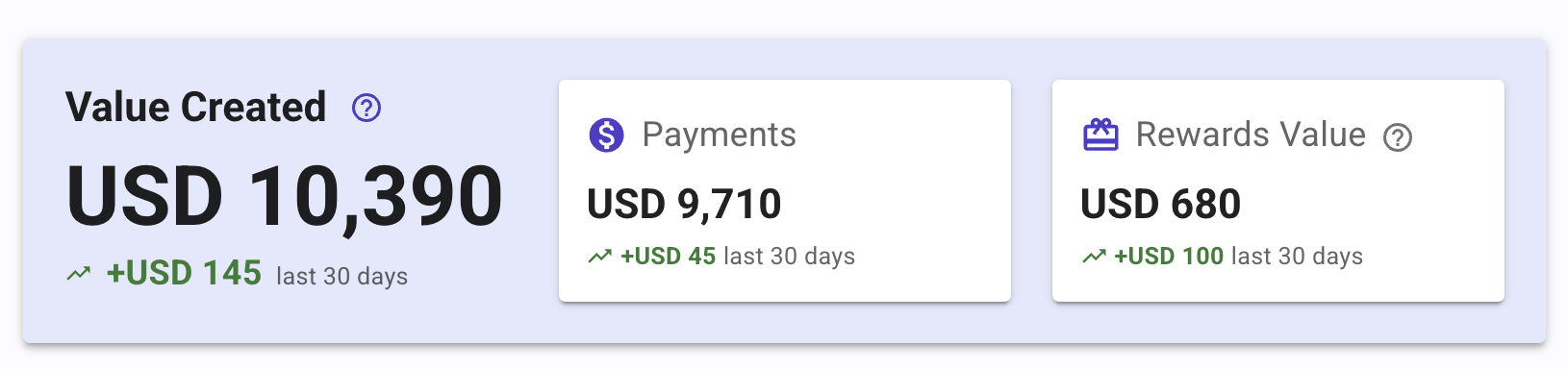 - Total Value - Combined payment and rewards value