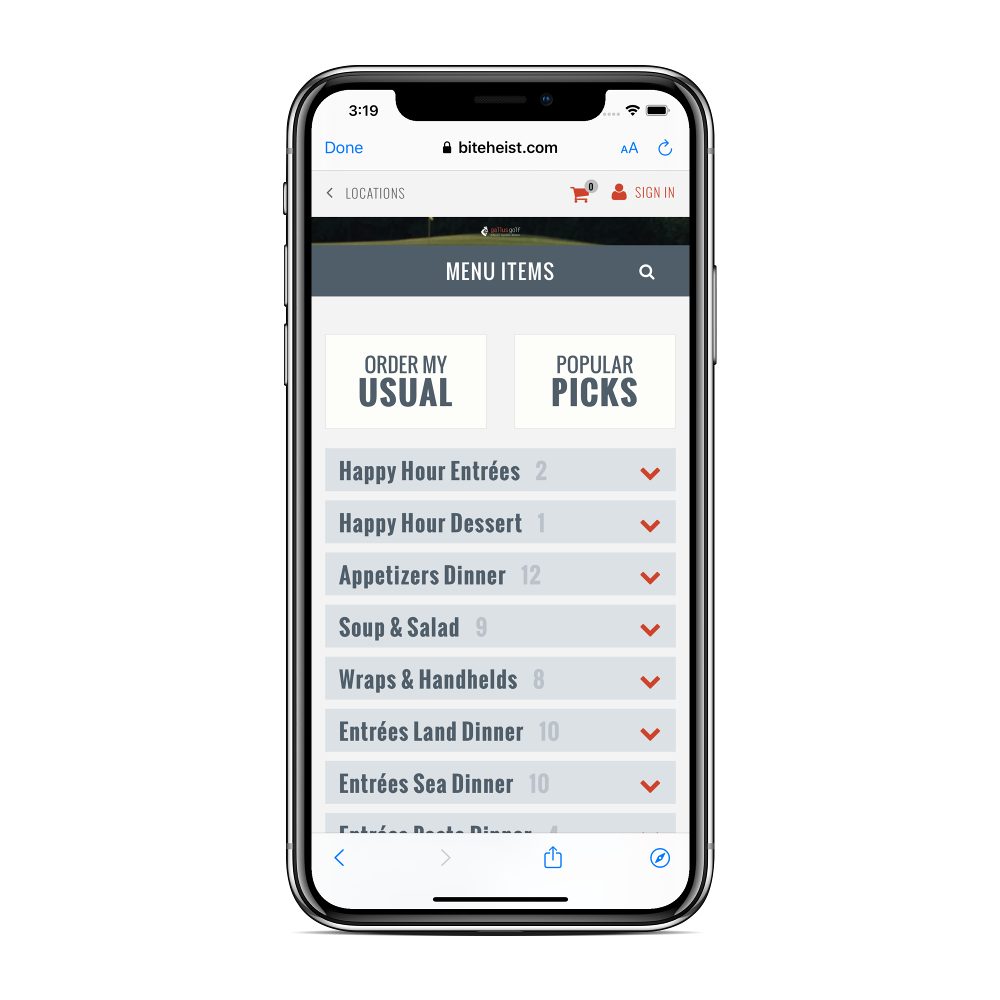 Maintenant, vous êtes dedans! Naviguez dans le menu et ajoutez des éléments à votre panier au besoin.
