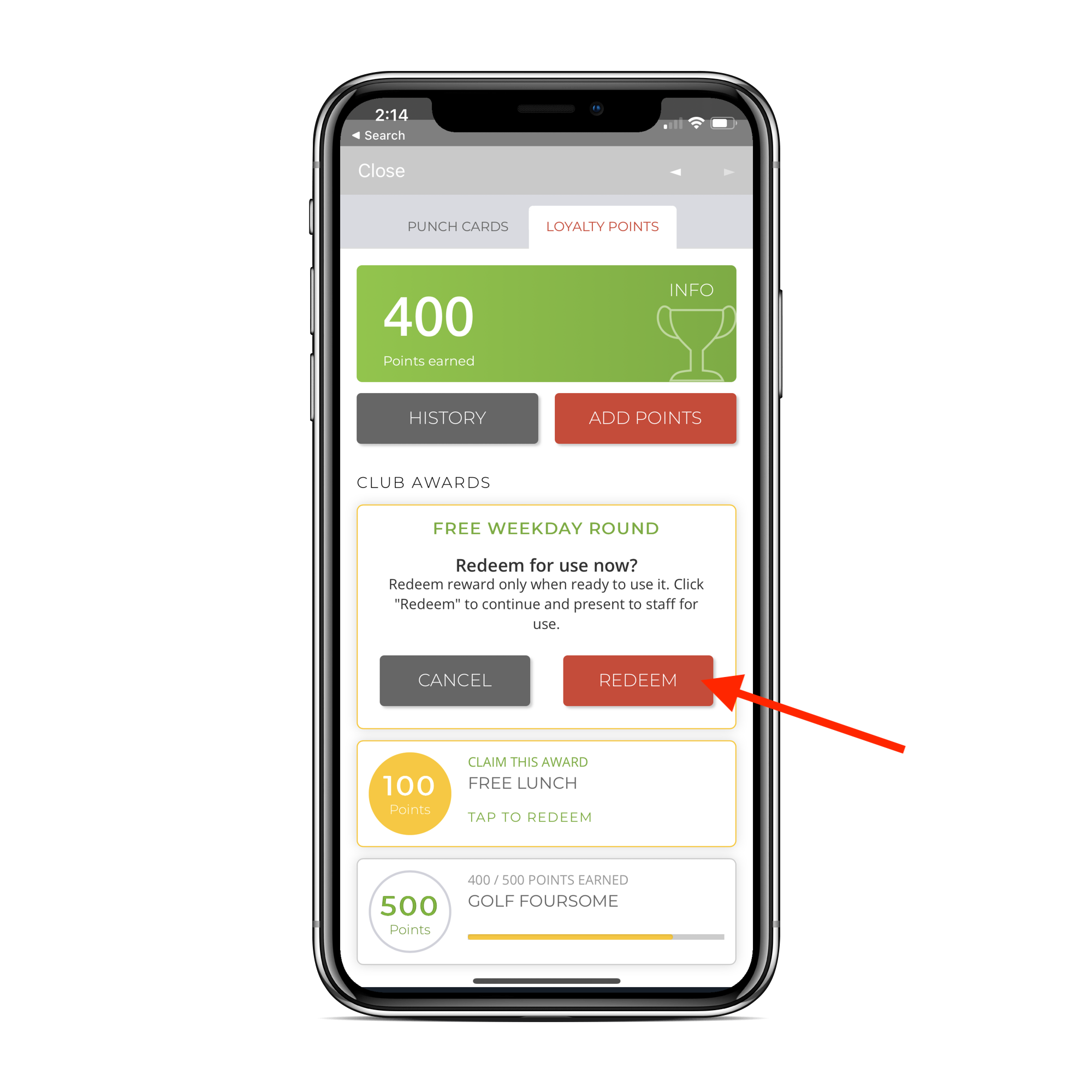robinets pour les clientsRédempteurdans l'application sur la bonne récompense, puisSoumettre.Un message de confirmation apparaîtra et ils peuvent s'afficher au personnel pour vérification, ou le membre du personnel peut cliquer sur leHistoireonglet dans le portail de fidélité du personnel pour vérifier qu'une récompense a effectivement été échangée.