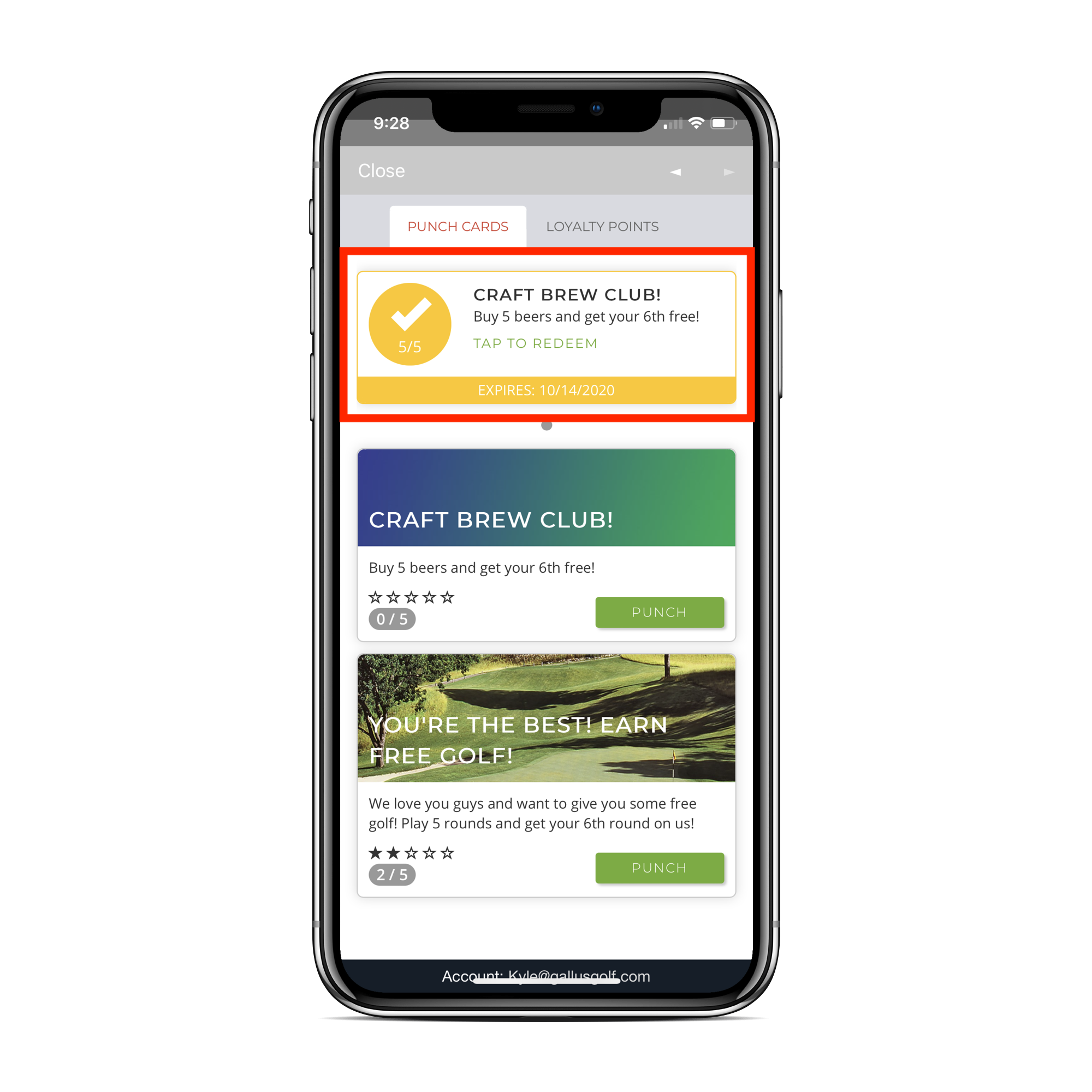 Une récompense est " gagnée" si le cercle avec les points est jaune et "Tap to Redeem" apparaît sous la récompense.