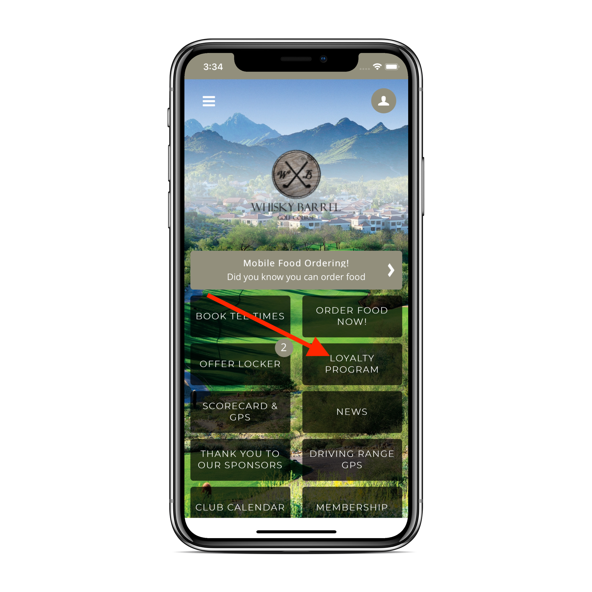 L'utilisateur s'appuie surProgramme de fidélisationbouton sur leHome Screende l'application.